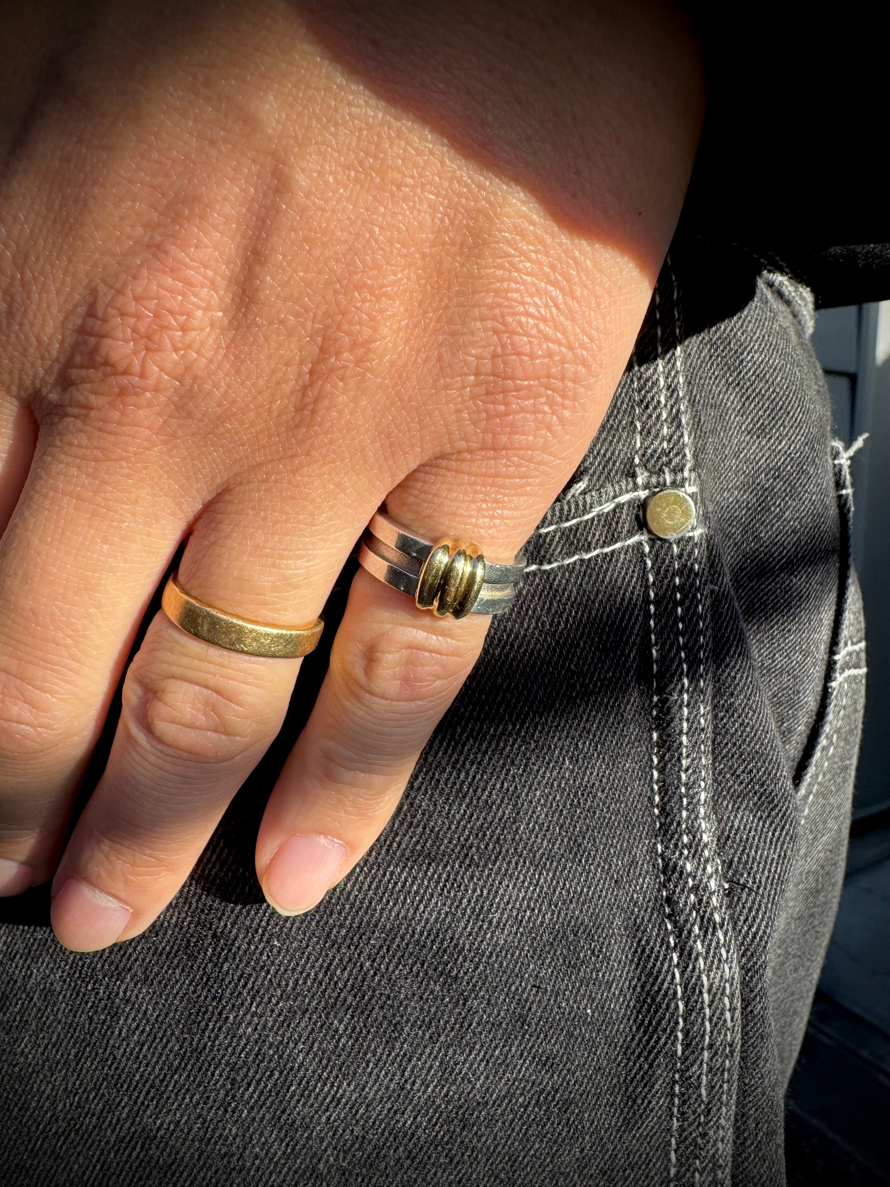 シルバーの重圧なボディにゴールドパーツが映えるグルーブドウィズコンビリング。