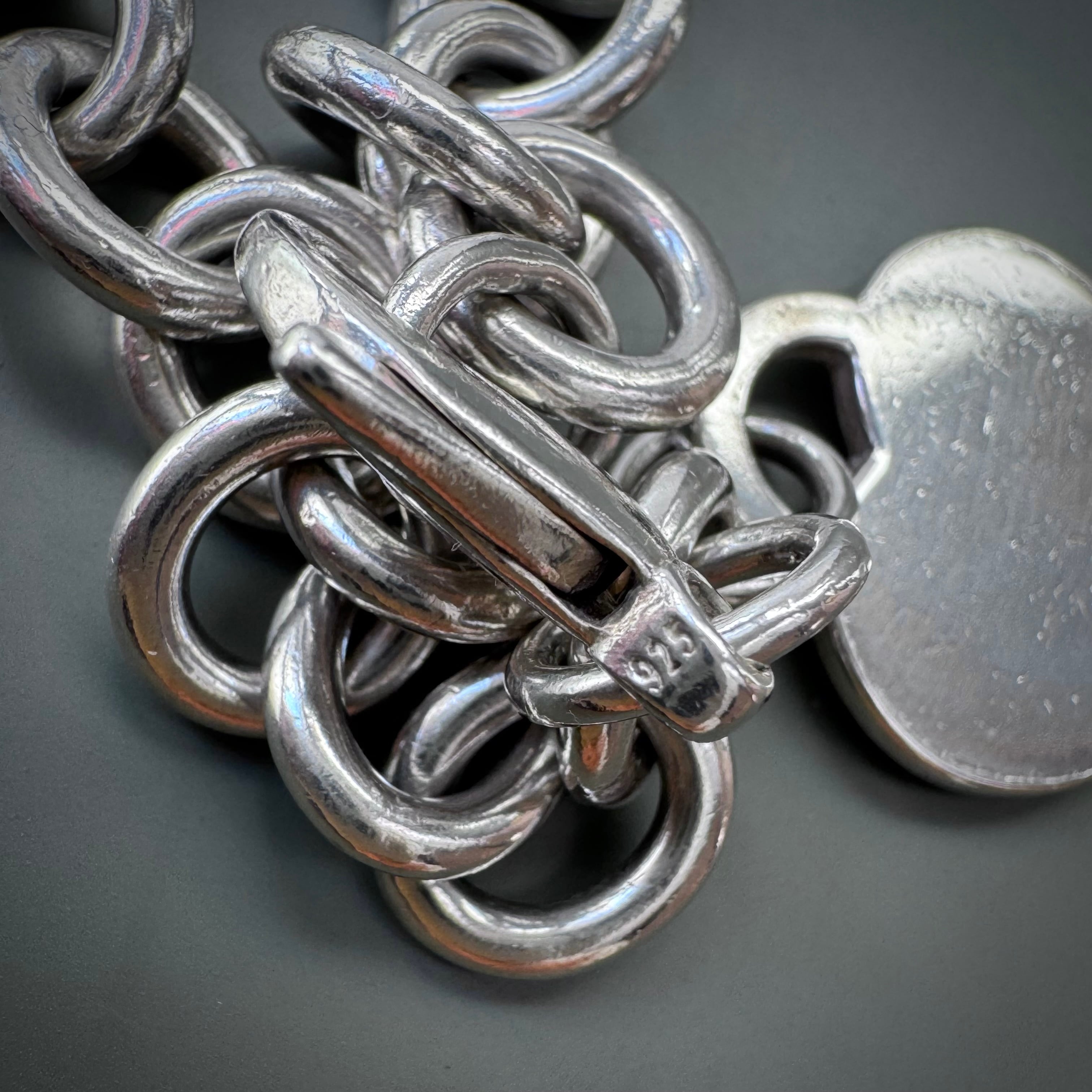 存在感のあるシルバーチェーンにゆらゆらと揺れるハートチャームがポイントのリターントゥティファニー ハートタグブレスレット。人気のリターントゥティファニーの刻印入りタイプです。