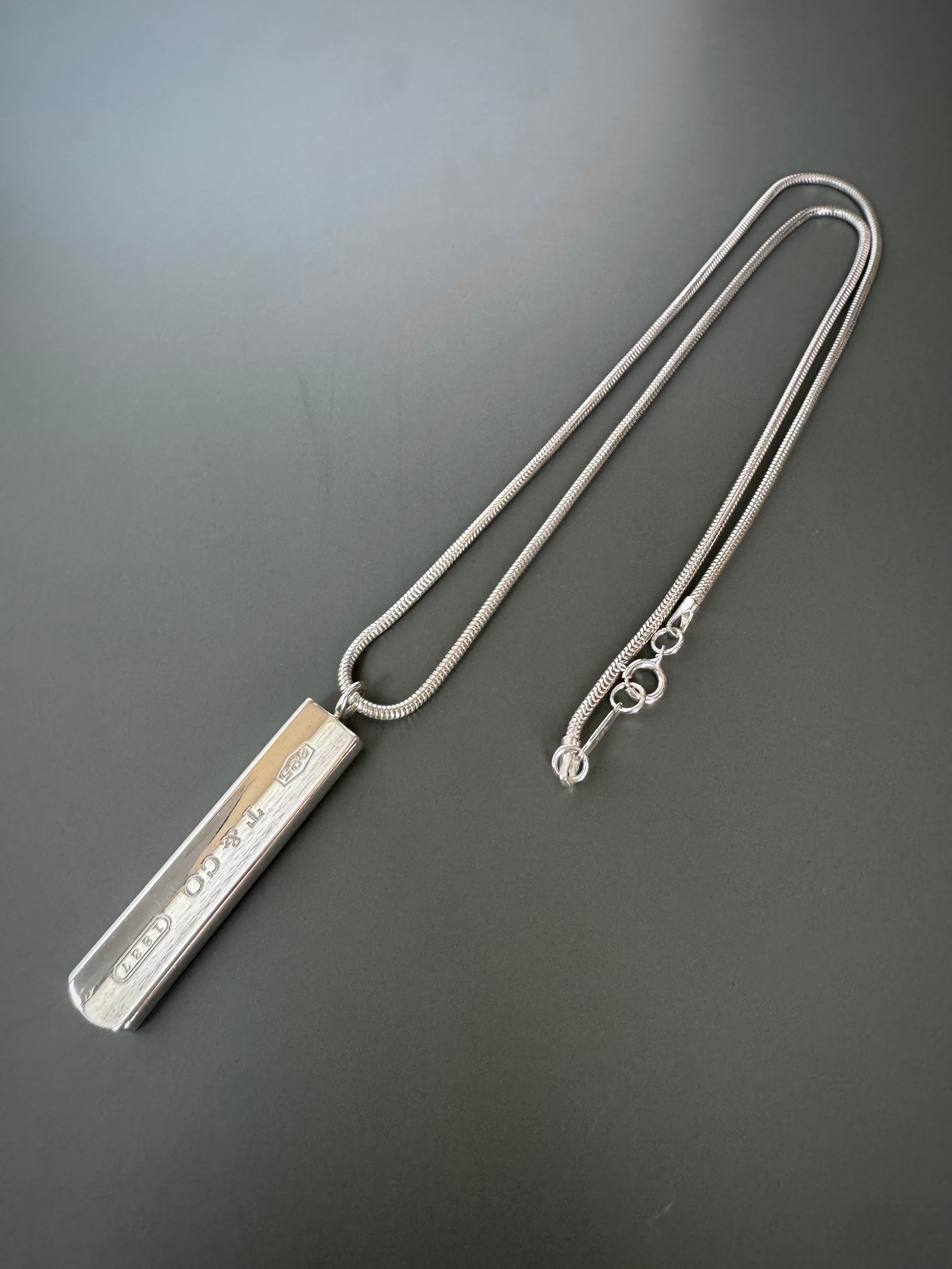 ティファニー創業の年が刻印された、シンプルながらも洗練されたデザインが特徴のナローバー スネークチェーンネックレス。無駄のないミニマルなデザインが、首元に心地よいシルエットを演出します。