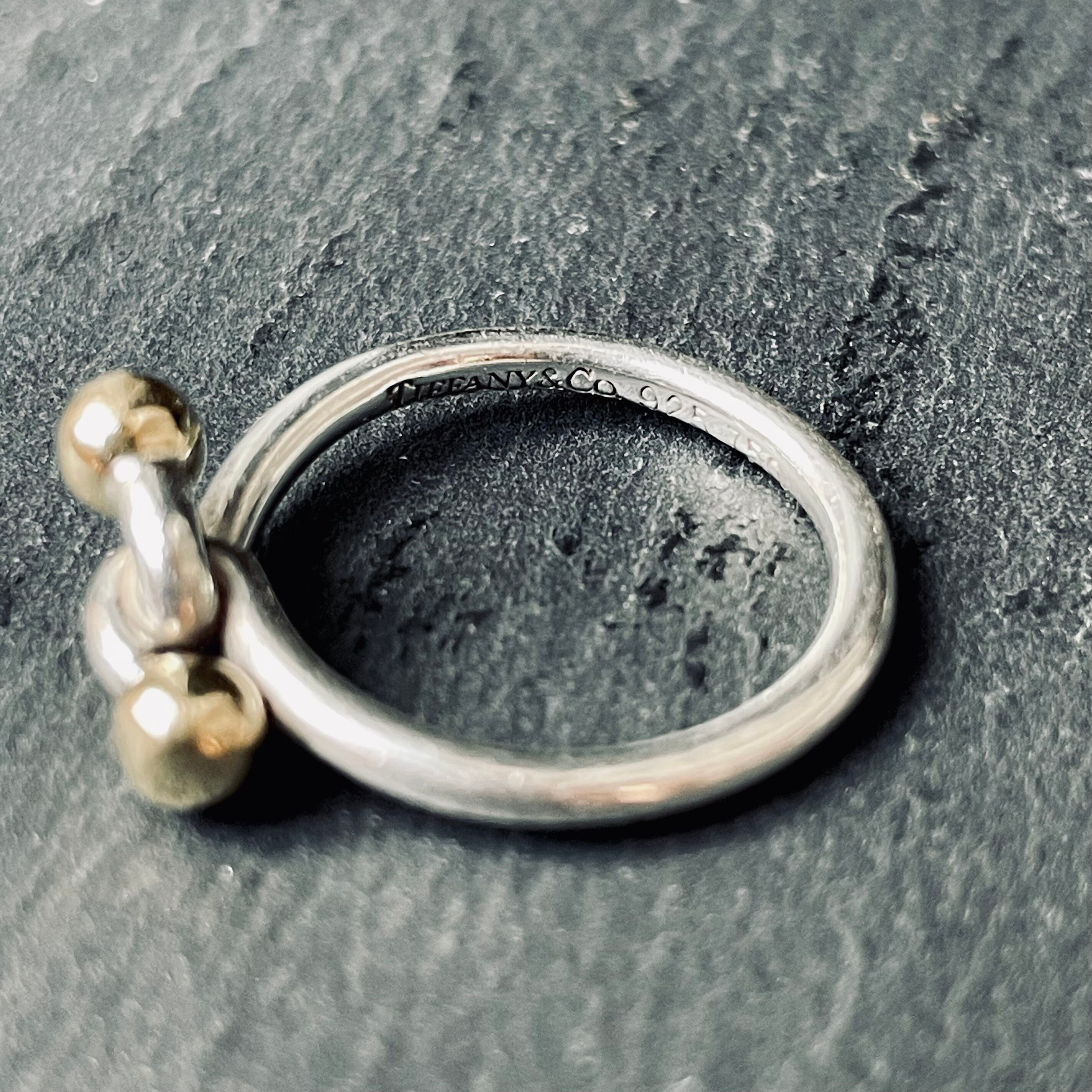 18Kのゴールドのボールとシルバー925の素材を組み合わせたデザインが特徴のリング。