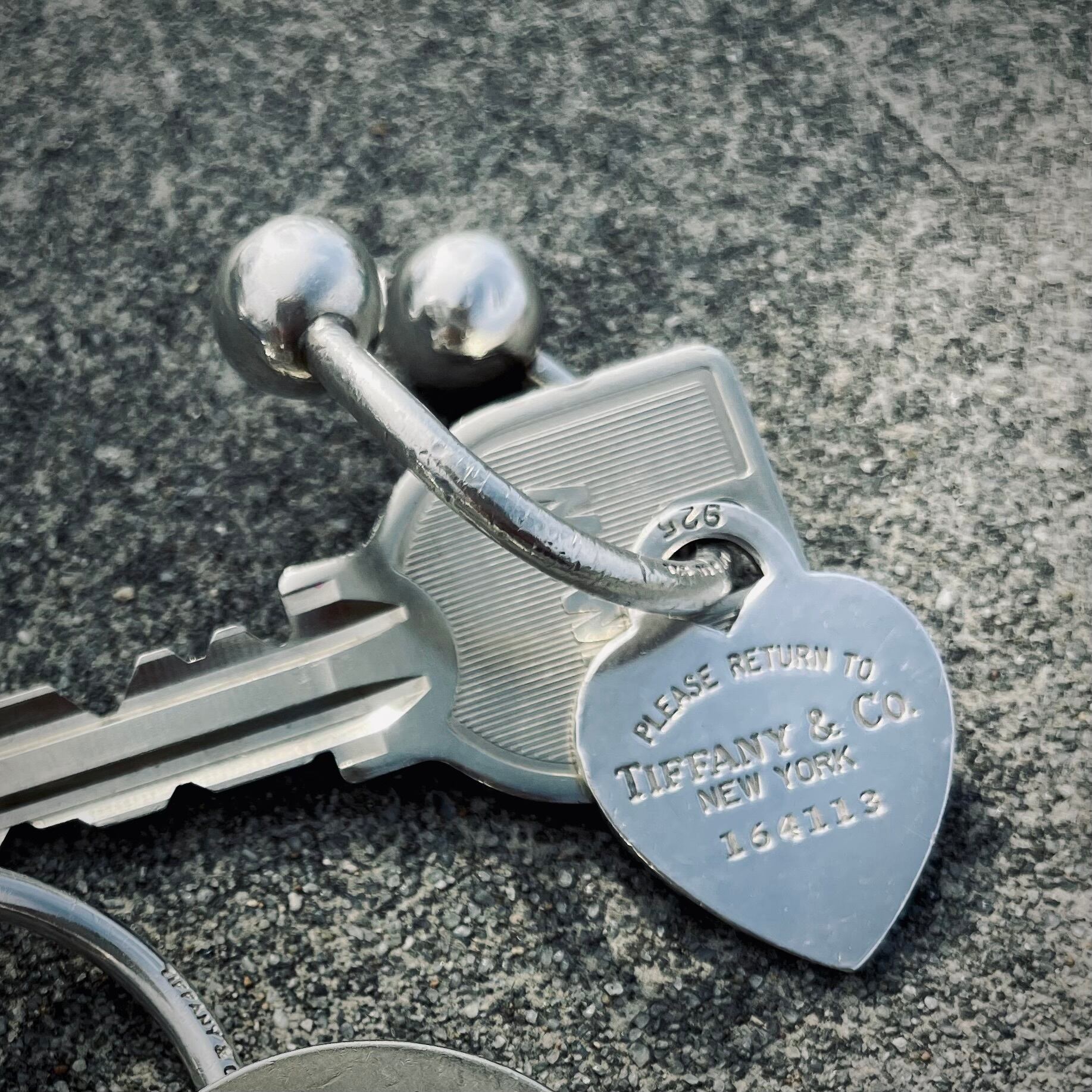 シンプルで小さいながらも存在感のある、リターントゥティファニーの彫刻が入ったハートチャームが特徴のキーリング。
