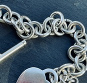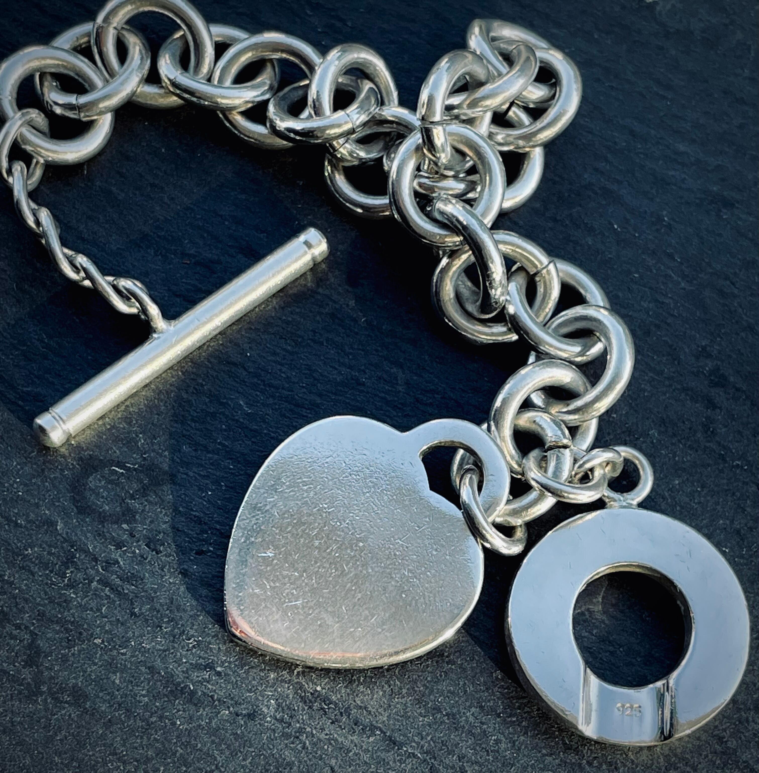 トグルタイプの留め金具がポイントのクールなのに可愛らしいハートタグトグルブレスレット。