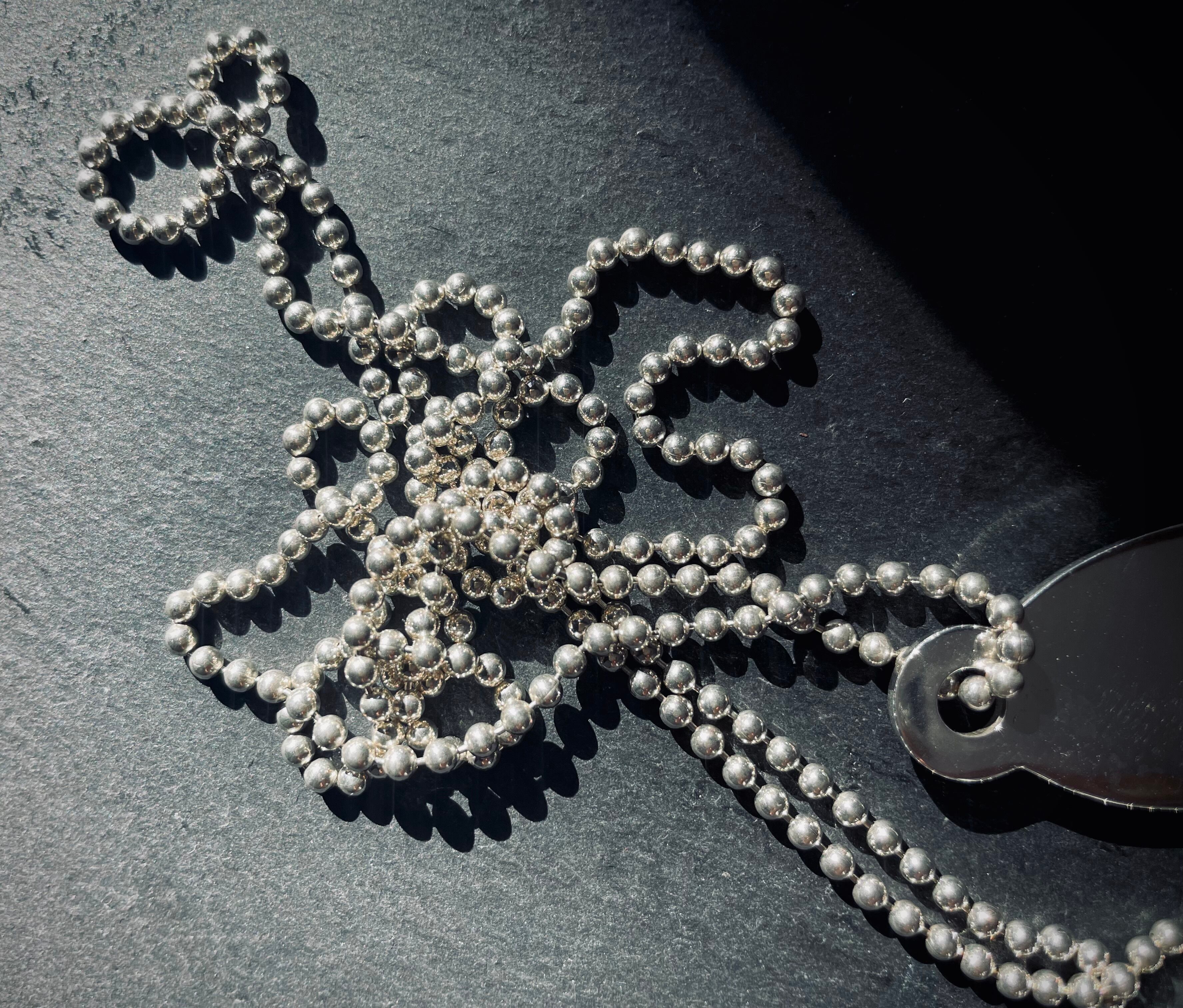 シンプルなデザインが魅力の、オーバルタグ ボールチェーンネックレス。