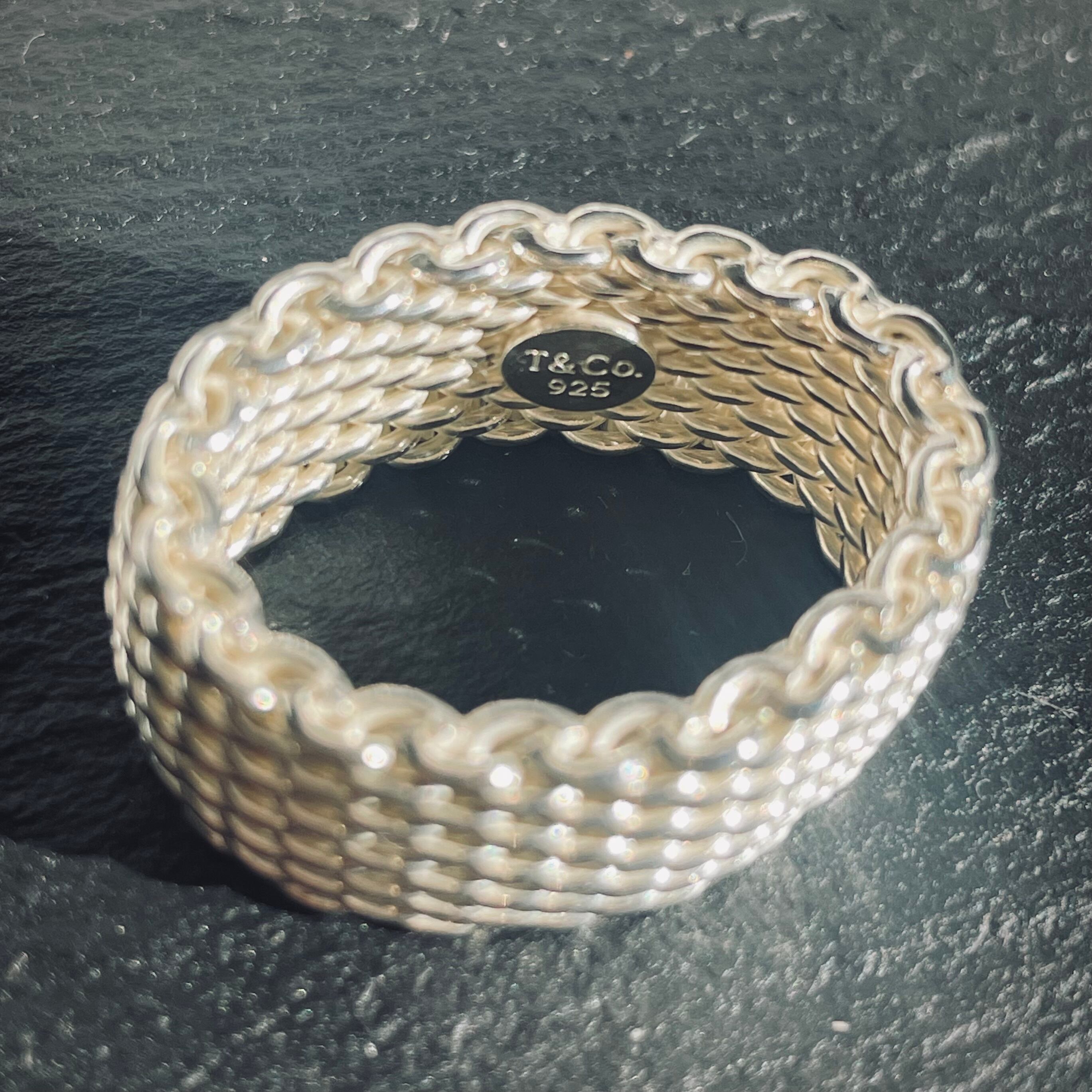 エレガントでスタイリッシュなサマセット メッシュ リング。シンプルながらも、繊細なメッシュのデザインが指先を美しく際立たせます。