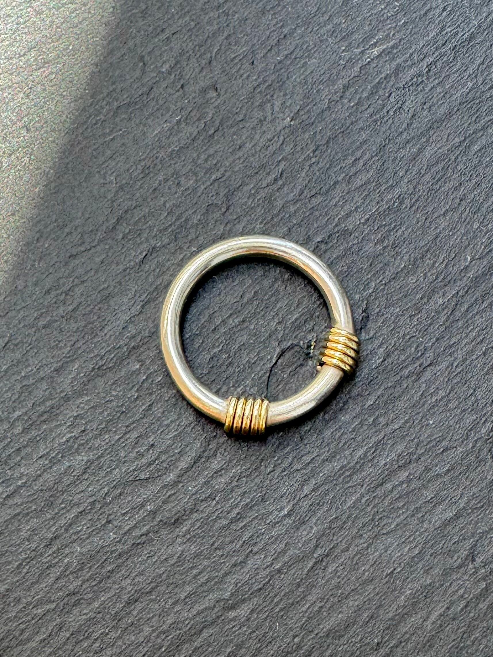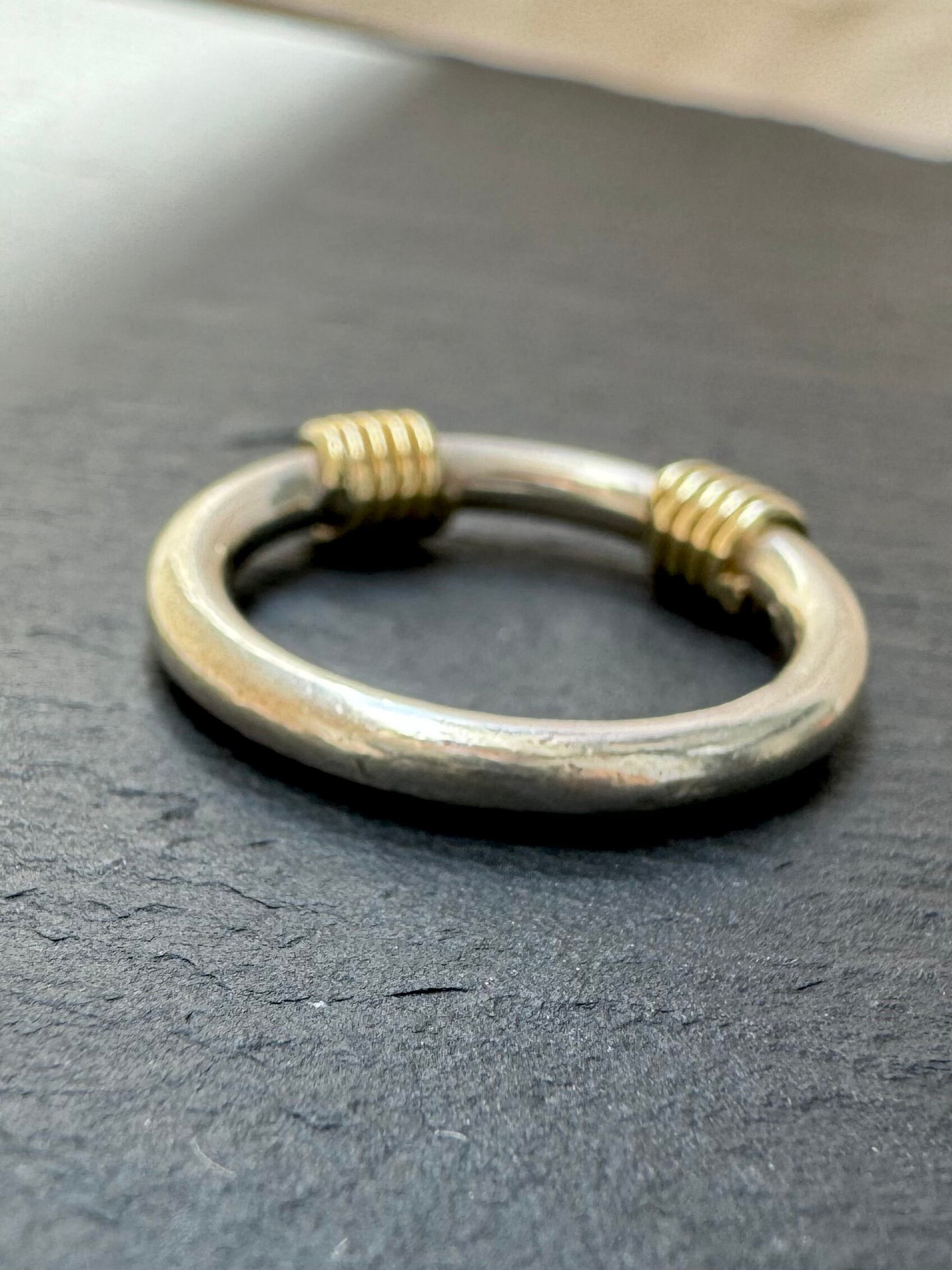 シンプルなシルバーリングに2本のゴールドワイヤーが指先を華やかに演出します。