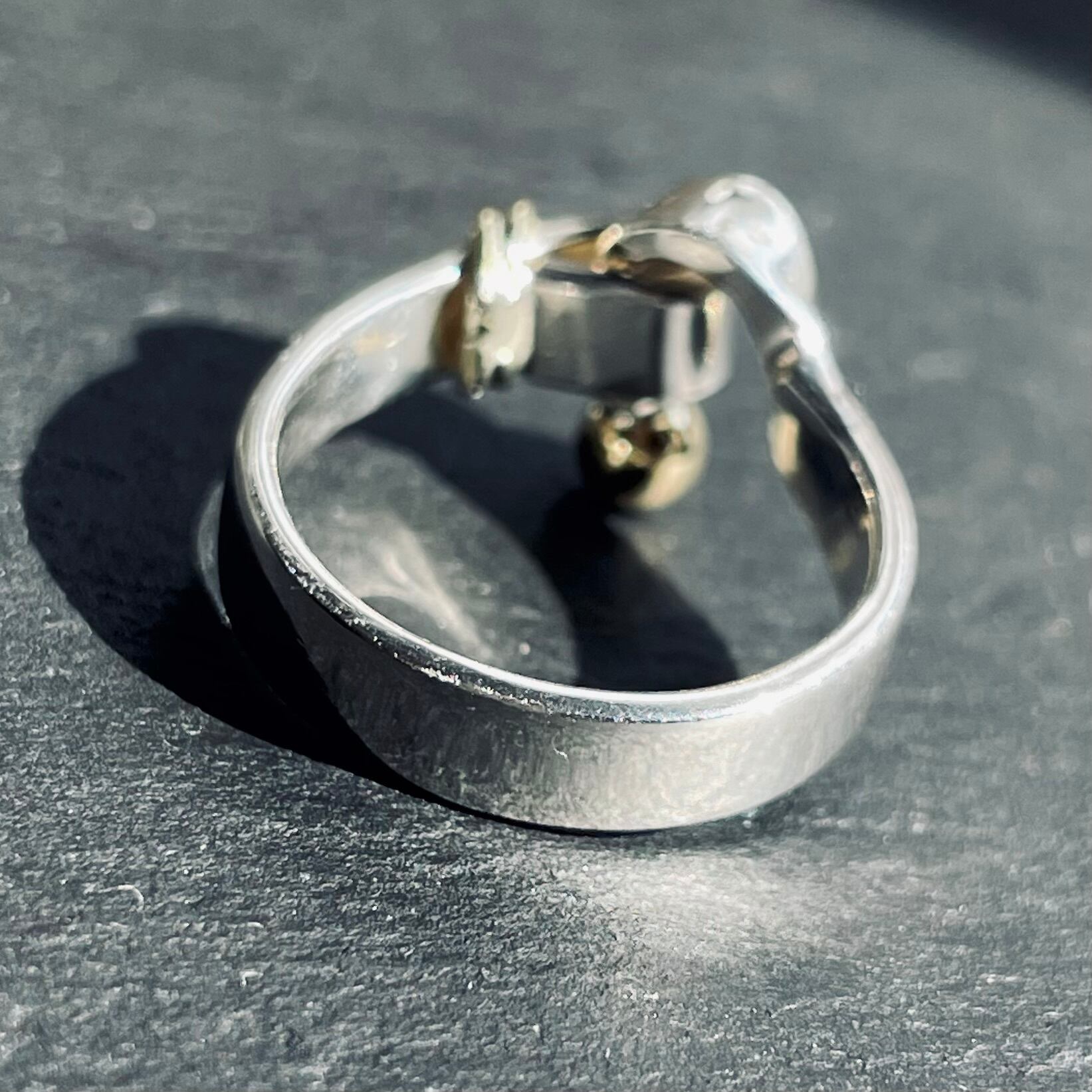 18Kゴールドとシルバー925の素材を合わせたユニークでエレガントなデザインが特徴のフック&アイリング。