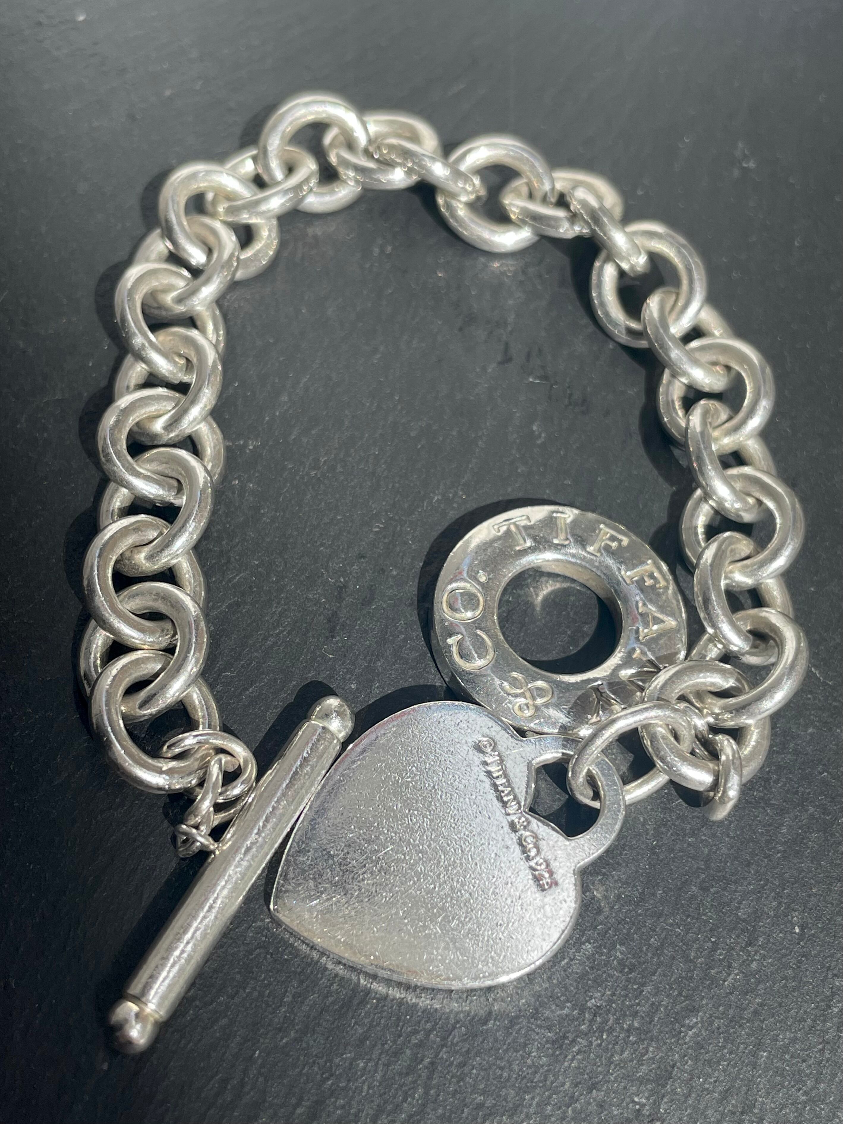 トグルタイプの留め金具がポイントのクールさと可愛らしさを兼ね備えたハートタグトグルブレスレット。