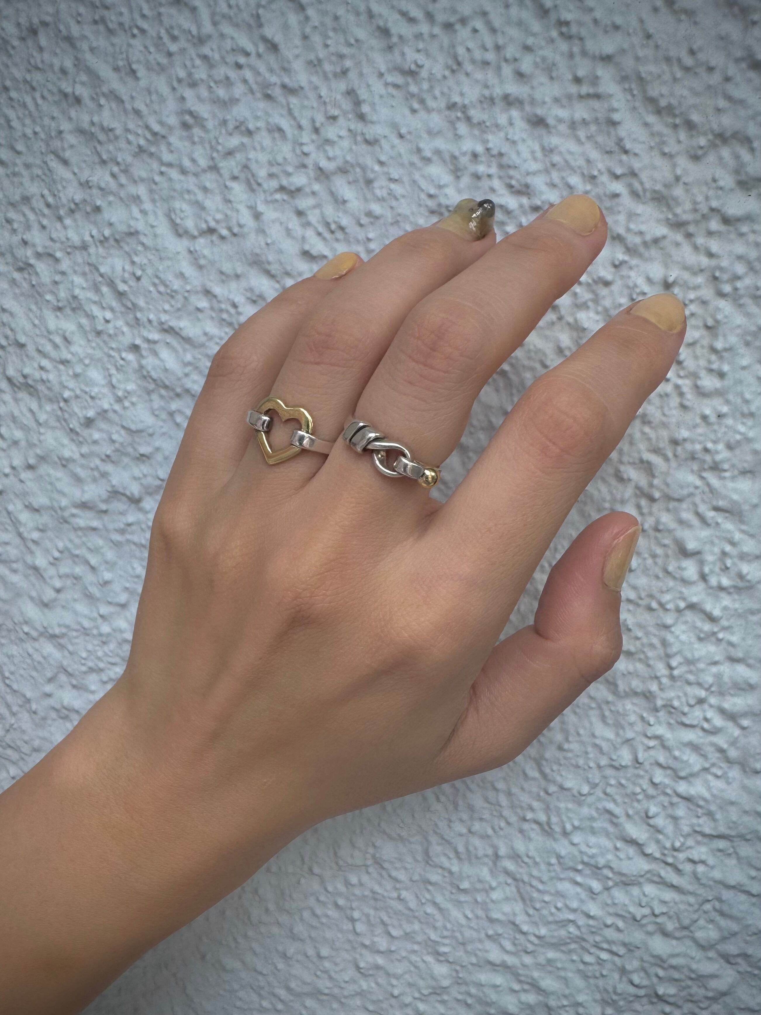 18Kゴールドとシルバー925の素材を合わせたユニークでエレガントなデザインが特徴のフックアンドアイリング。
