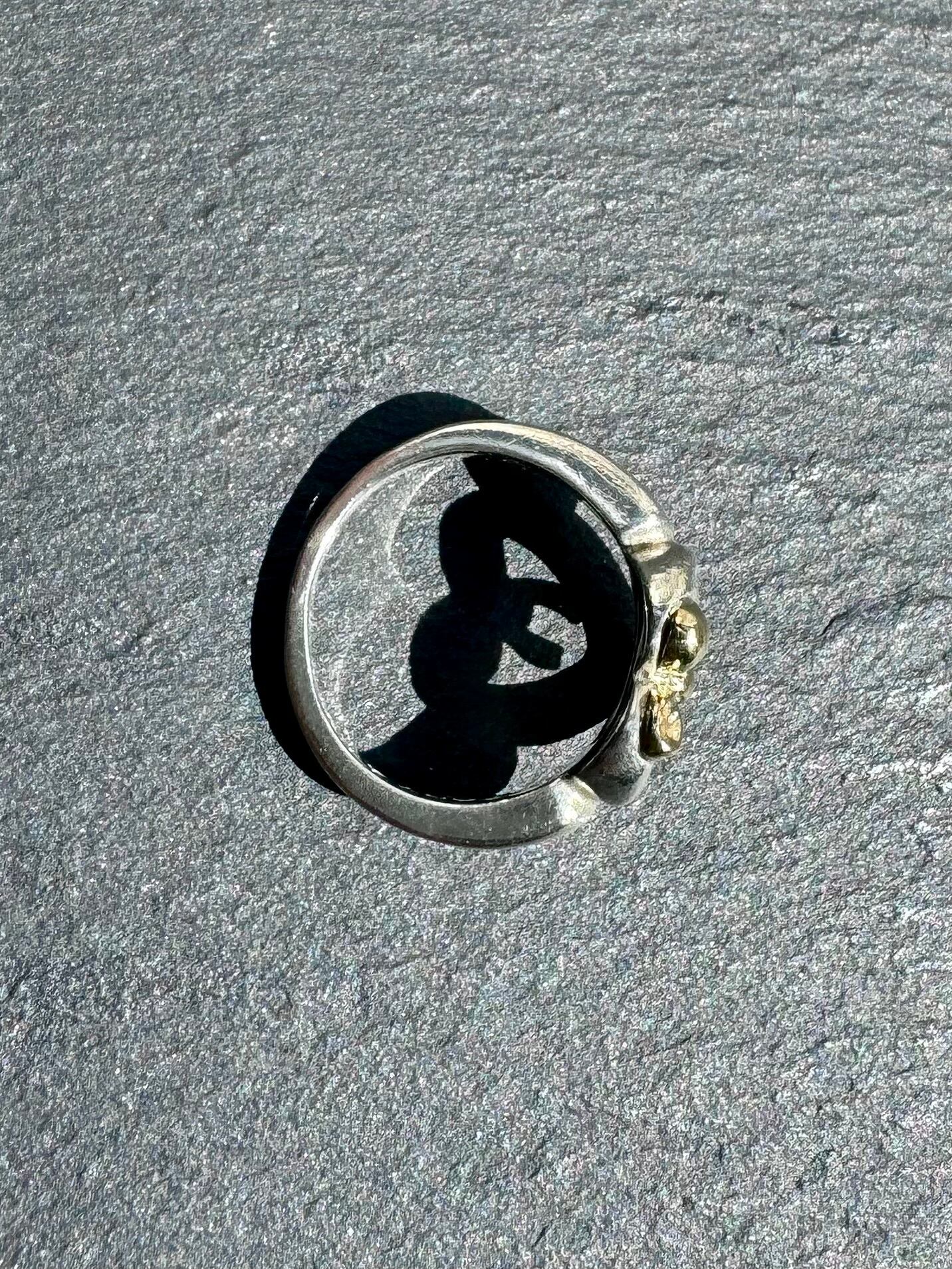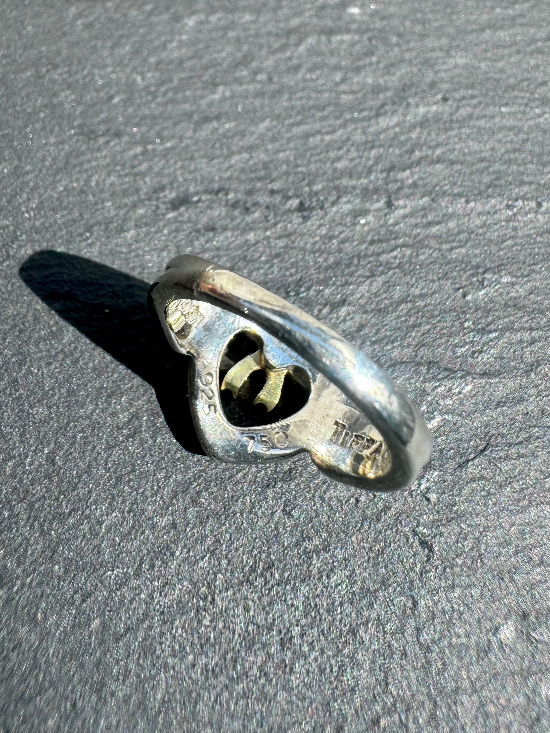 可愛らしいハートにゴールドのリボンモチーフがついたハーリボンコンビリング。