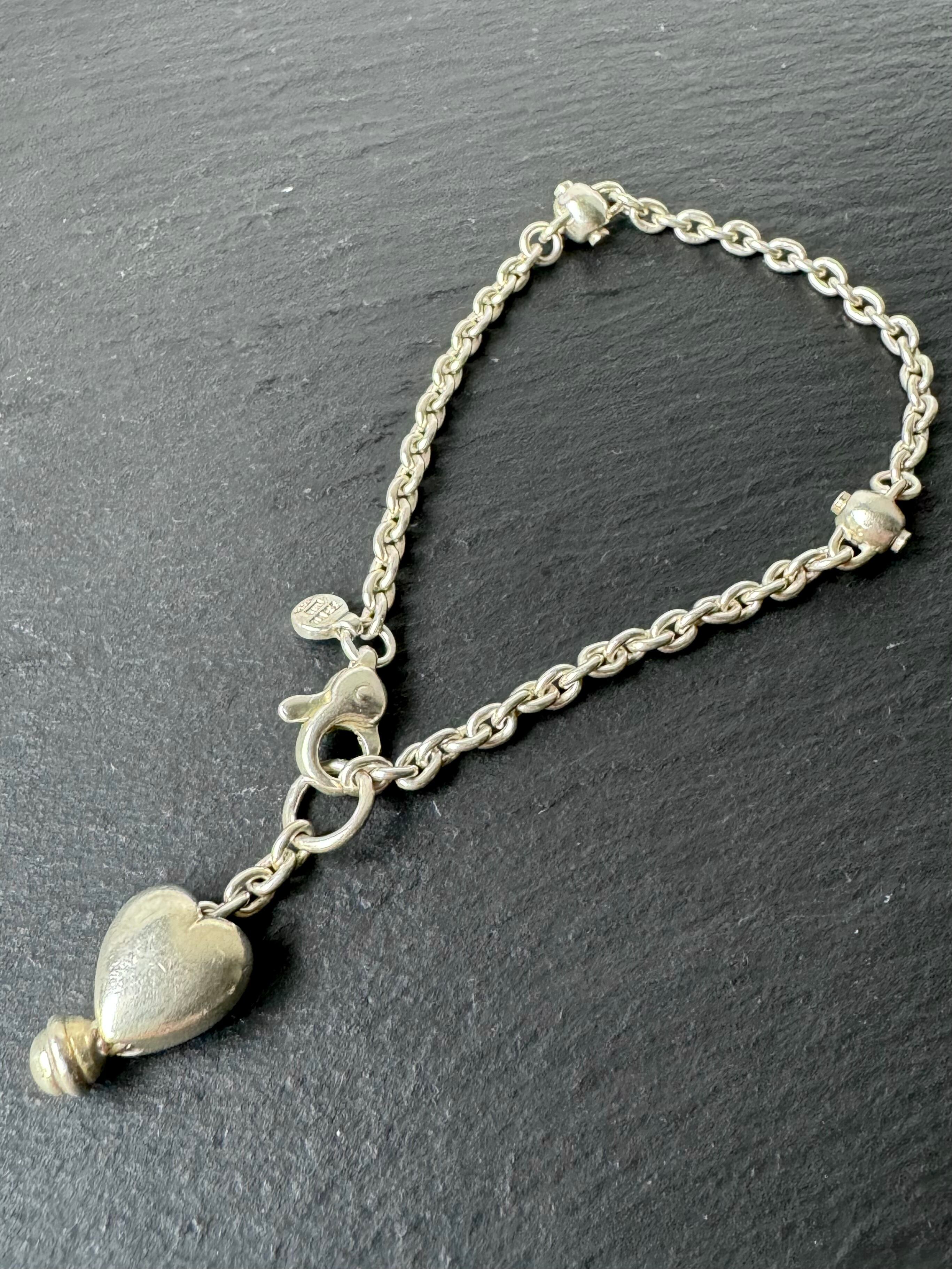 シンプルながらも程よく存在感のあるチェーンに、可愛らしいハートチャームが特徴のハートモチーフ ブレスレット。
