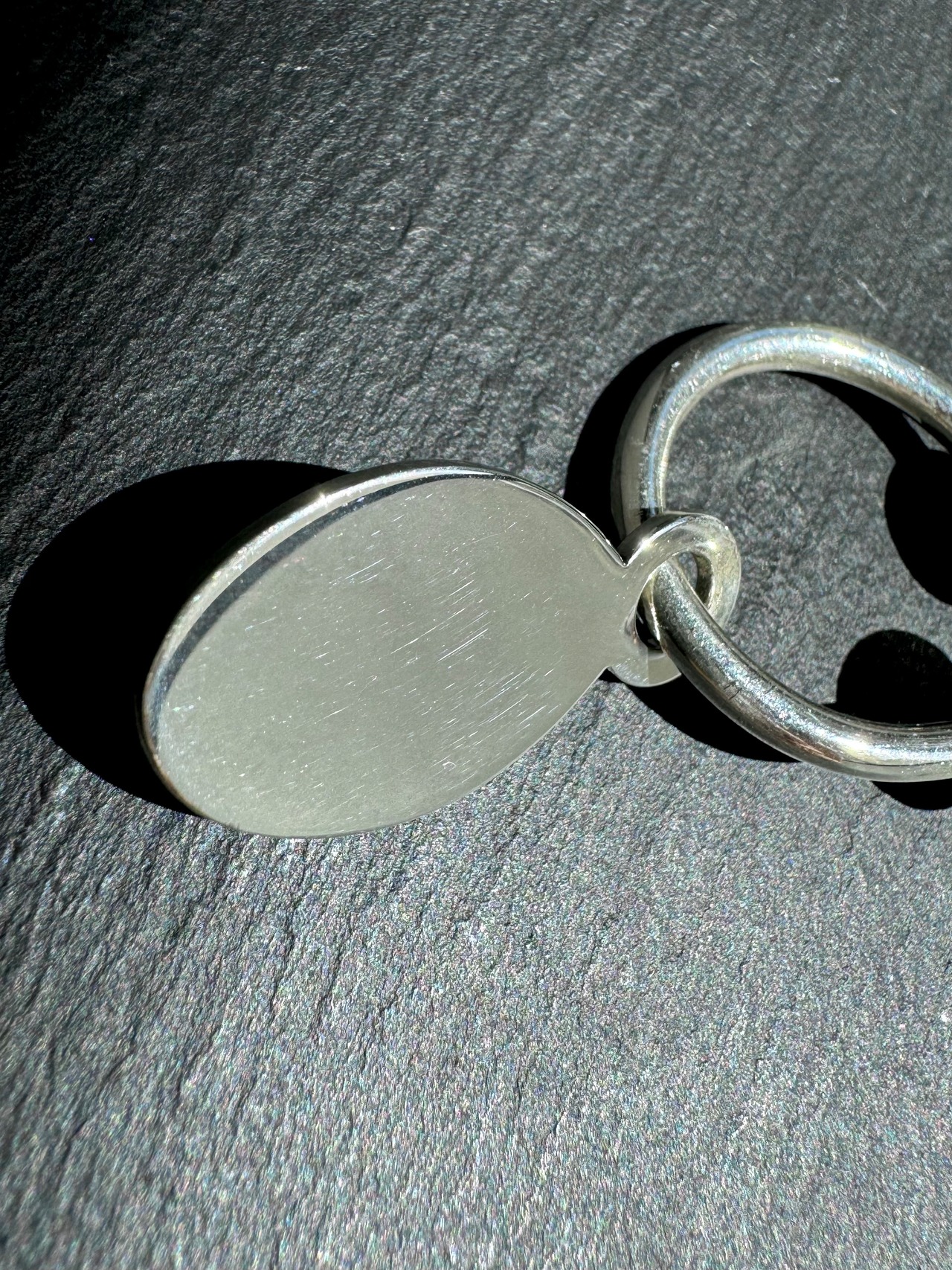 シンプルで小さいながらも存在感のある、リターントゥティファニーの彫刻が入ったオーバルタグチャームが特徴のキーリング。
