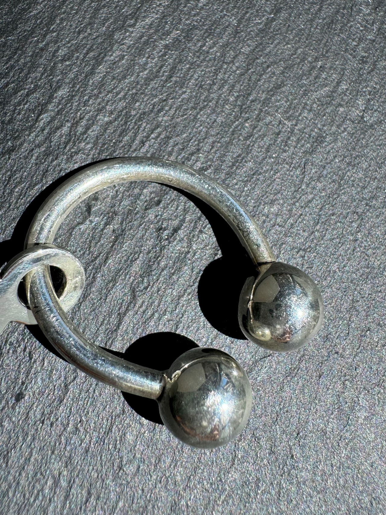 片方のボールをくるくると回して取り外し、鍵を通す事ができます。