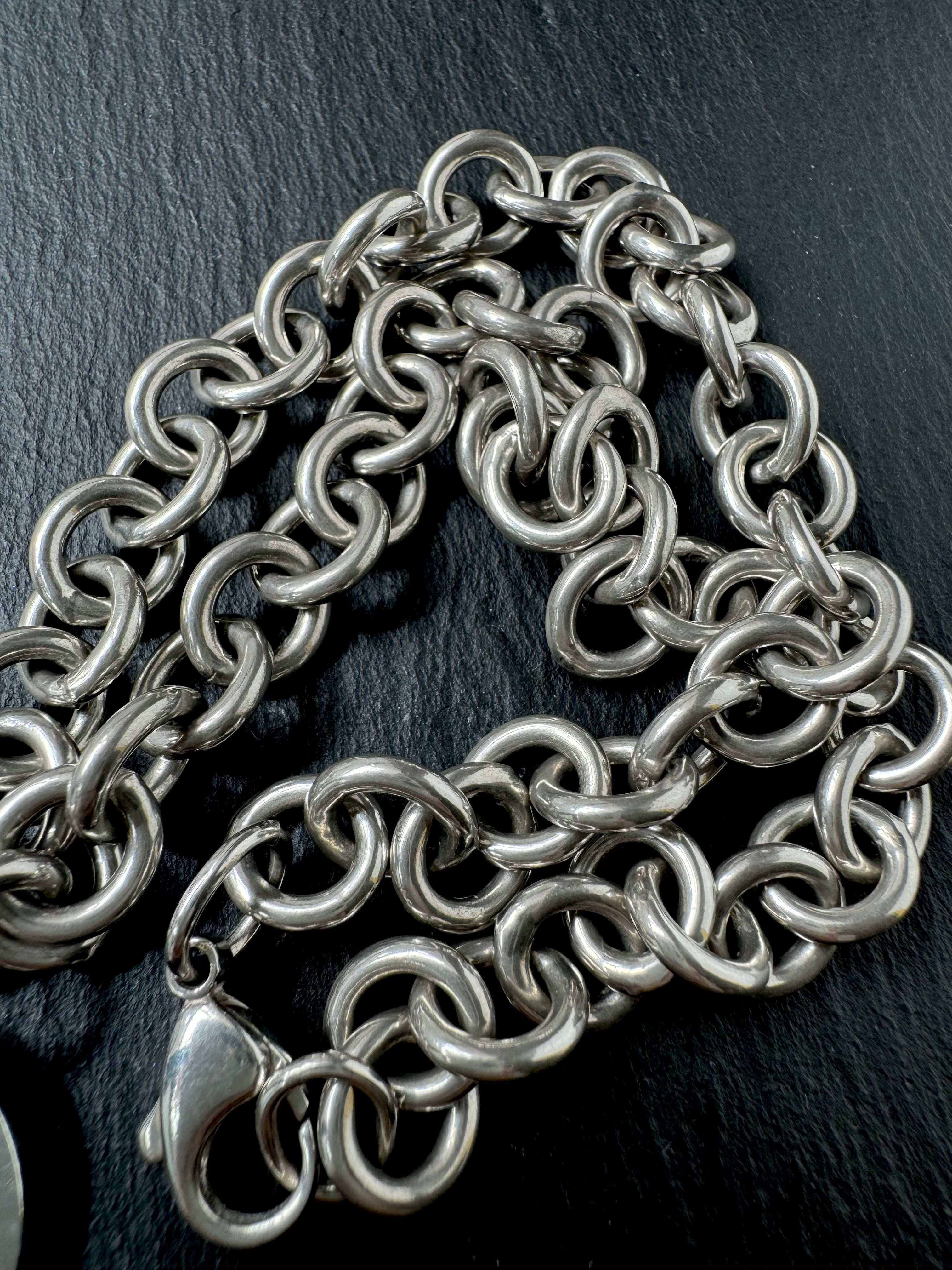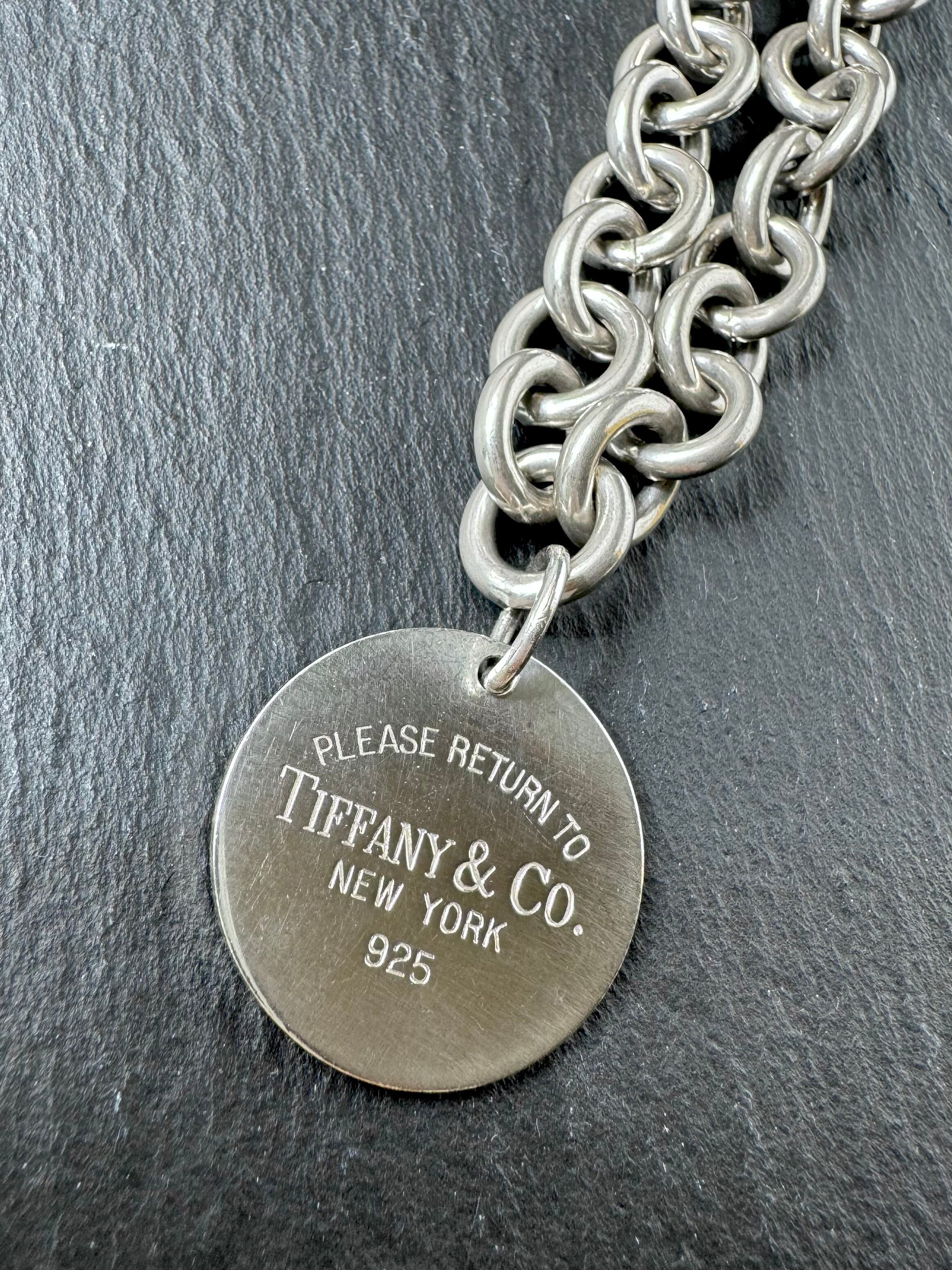 リターントゥティファニー ニューヨークの刻印の入ったシンプルなデザインでありながら、存在感を放つラウンドタグ ネックレス。
