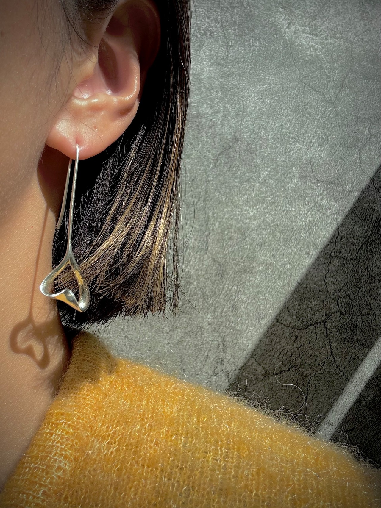 ゆらゆらと揺れるハートモチーフが耳元を美しく飾りつけるオープンハート フックピアス。