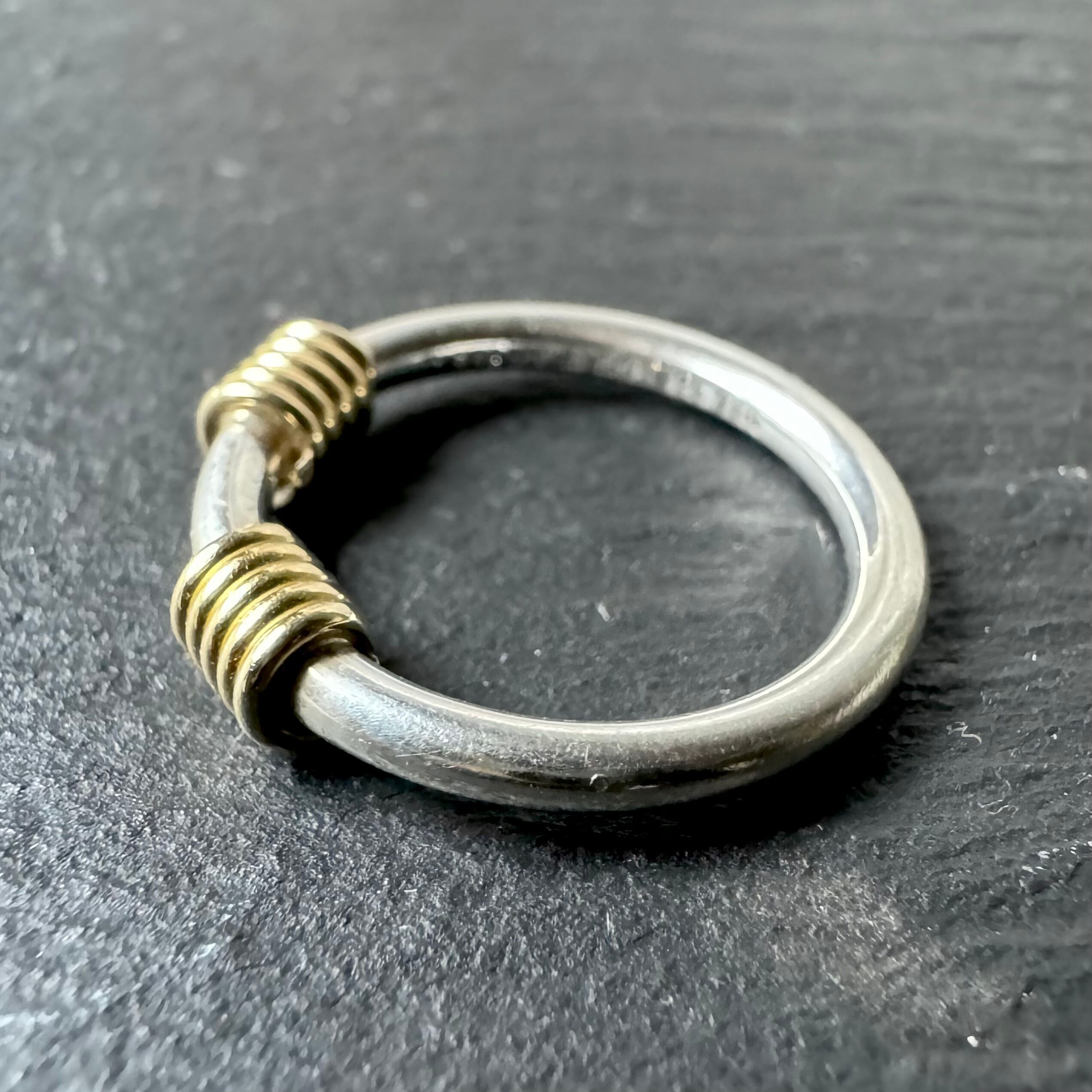 シンプルなシルバーリングに2本のゴールドワイヤーが指先を華やかに演出します。