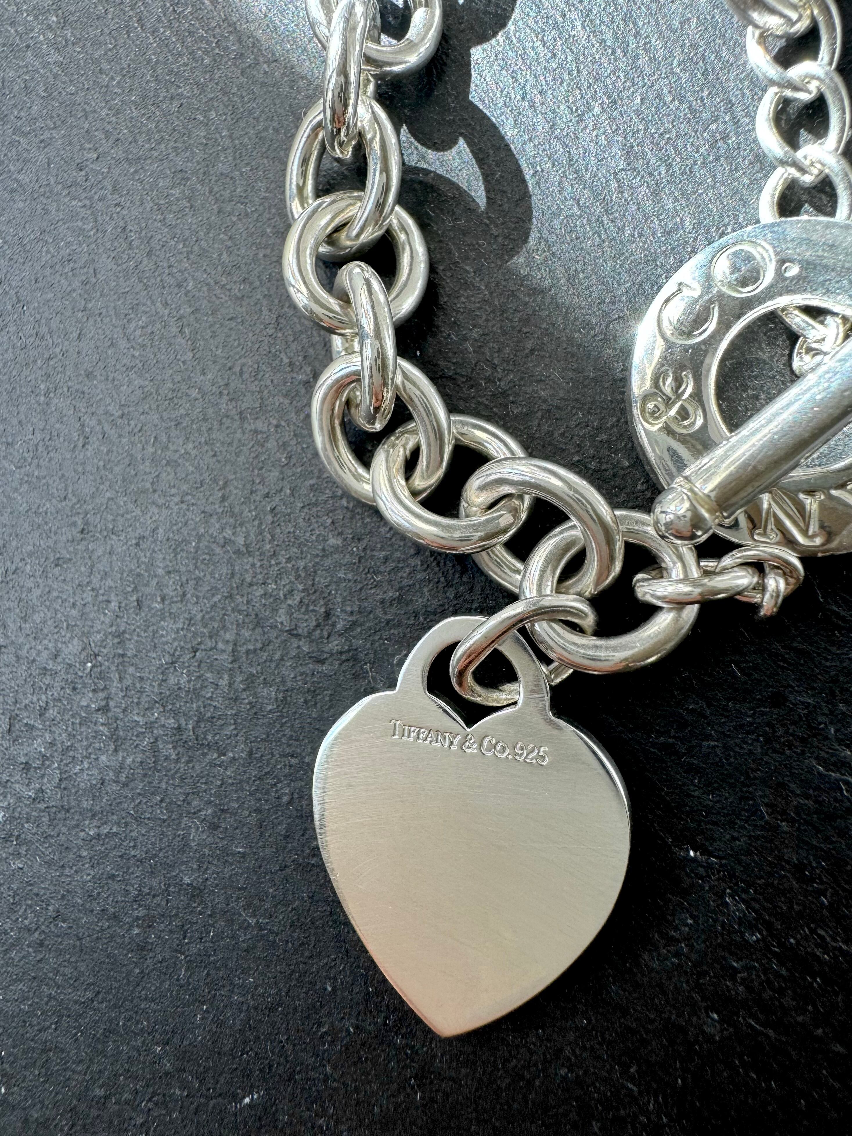 ハート型のチャームとトグルタイプの留め具がポイントのハートタグトグルネックレス。
