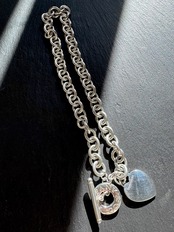 ハート型のチャームとトグルタイプの留め具がポイントのハートタグトグルネックレス。